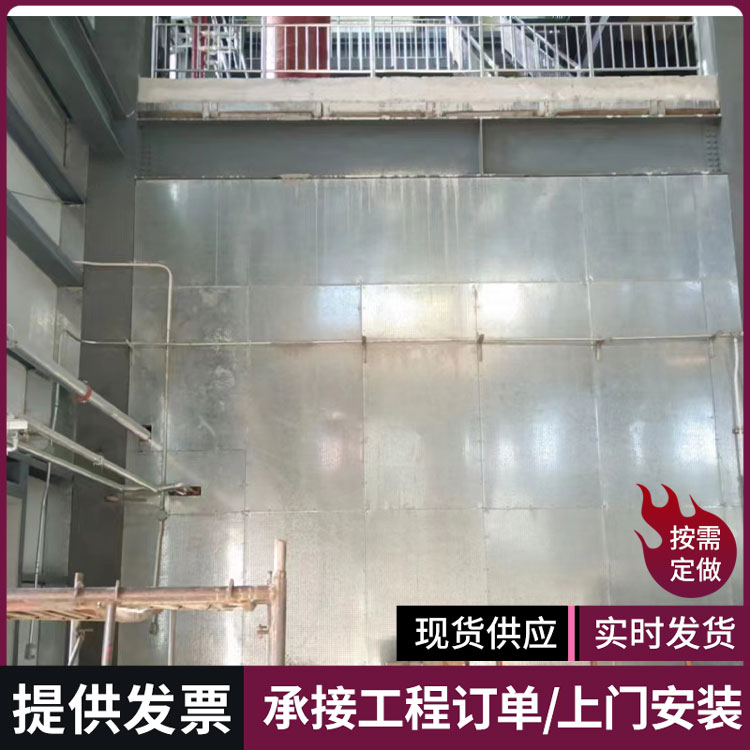 (2)纤维水泥复合钢板是由上下两块冲孔的0.5mm厚镀锌钢板强力压挤在8.5mm厚纤维水泥上构成的合成防火板材。夹在两层钢板中间的纤维水泥层具有吸收能量的作用。